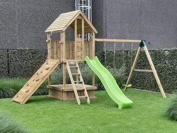 Our playground equipment consists of large prefab panels, a large part of the playground equipment is already pre-assembled in our workshop.