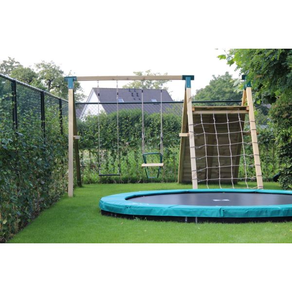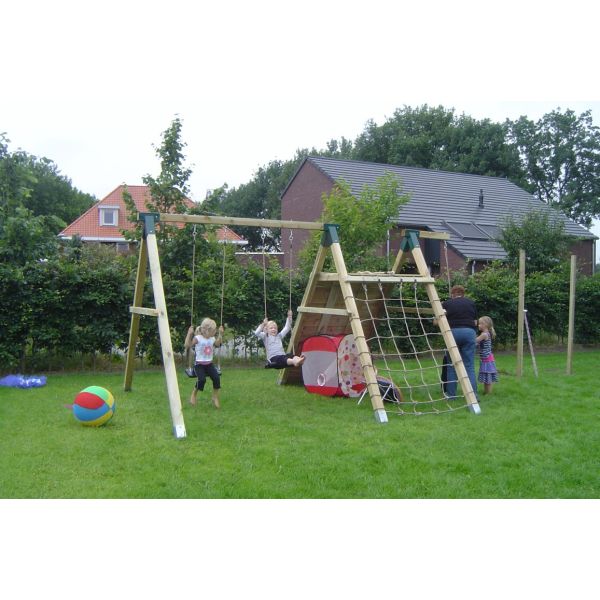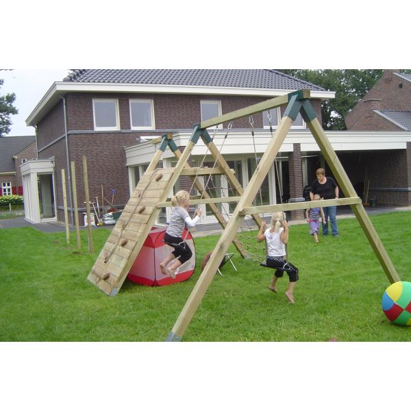 - Double swing, climbing wall, climbing net construction