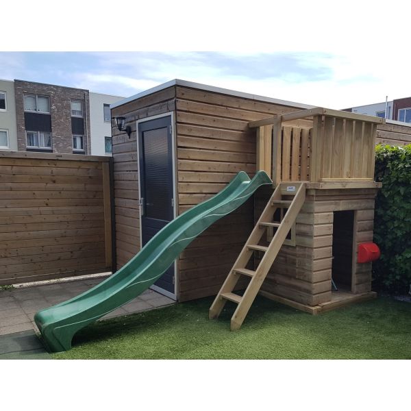 The Play Tower 120 is designed to allow the option of attaching a swing or climbing ramp.
