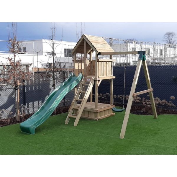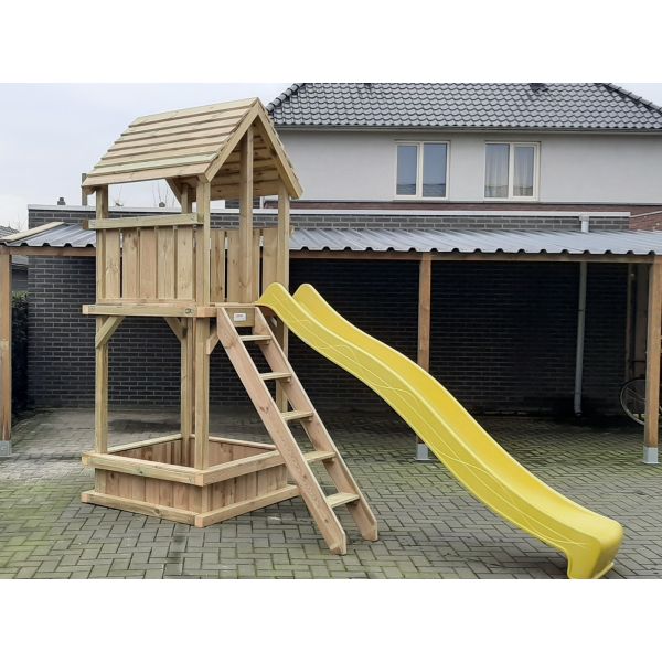 The Play Tower 120 is designed so that it is also possible to attach a swing or climbing ramp.