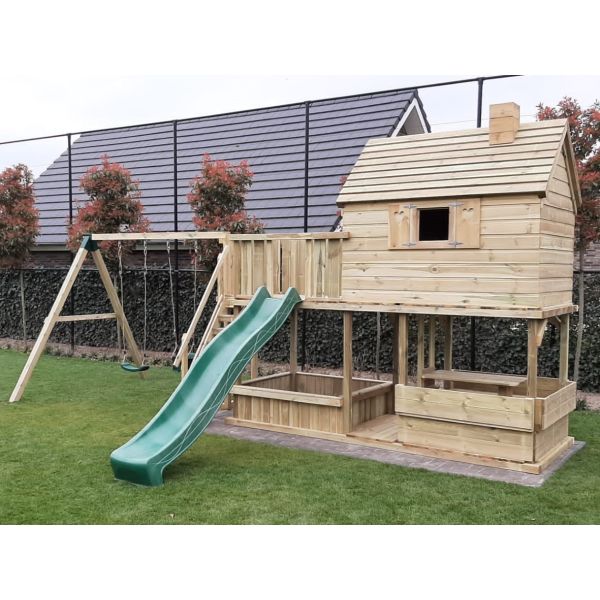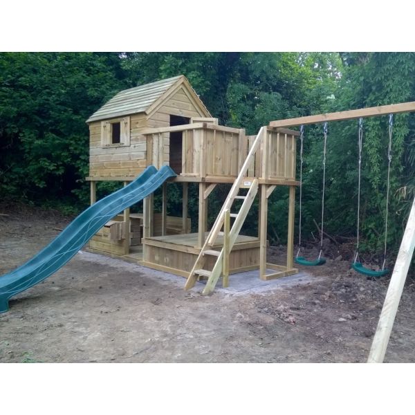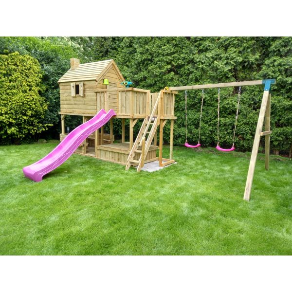 The play tower is designed so that you also have the option to add a swing and/or climbing ramp.