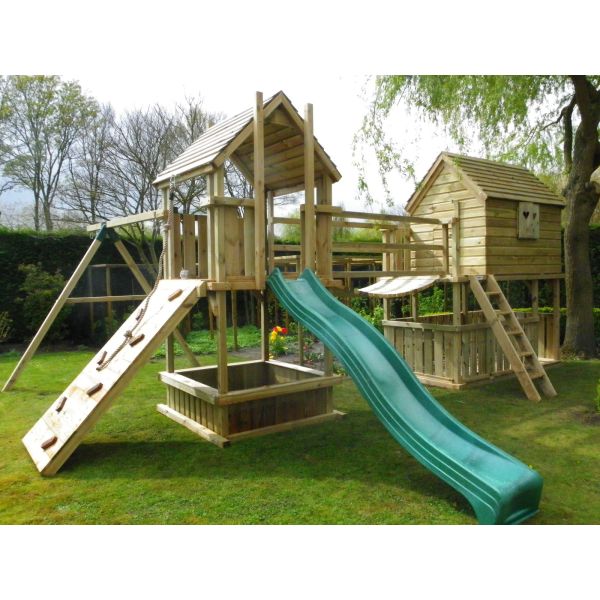 The Rotterdam playground equipment consists of a play tower with an upper house and a play tower 150 with a sandbox.