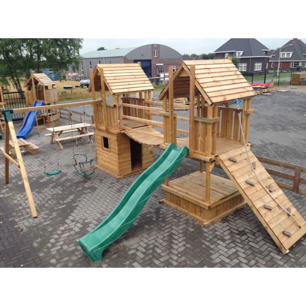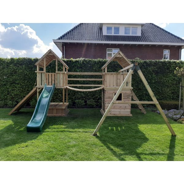 Je kunt dit zelf aanvullen met extra, alternatieve aanbouwdelen (klimnet/-wand, aanbouwschommel etc.) of extra's (deur, luikjes etc.).