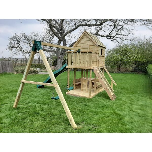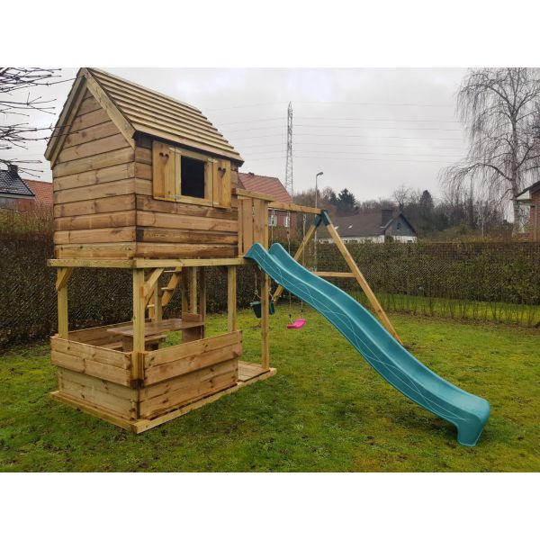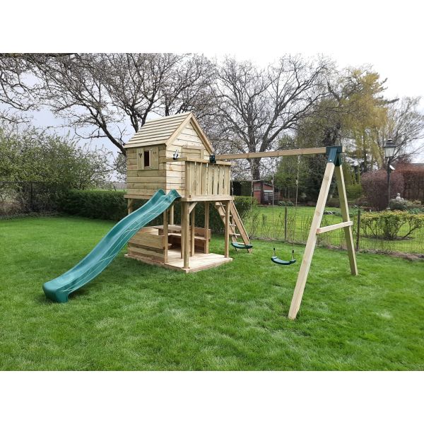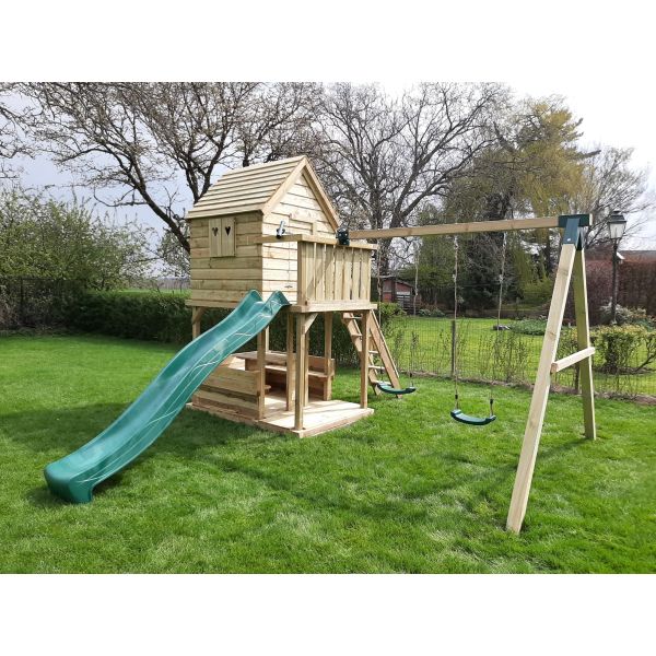 Je kunt zelf het speeltoestel uitbreiden met extra onderdelen (aanbouwschommel, klimwand etc.) of extra's (trapleunig, deur, luikjes etc.). Vergeet niet de schommelzitjes en enkele leuke accessoires mee te bestellen!