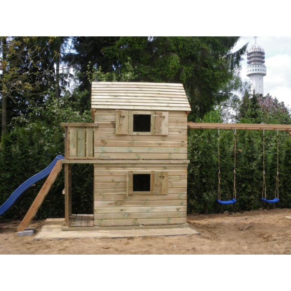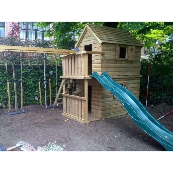 Je kunt zelf het speeltoestel uitbreiden met extra onderdelen (aanbouwschommel, klimwand etc.) of extra's (trapleuning, deur, luikjes etc.). Vergeet niet de schommelzitjes en enkele leuke accessoires mee te bestellen!