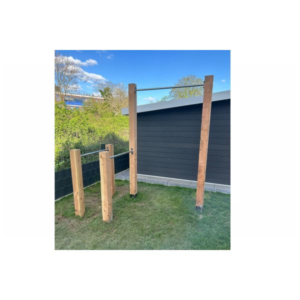 Op zoek naar de ultieme uitrusting voor je outdoor street workout? Deze douglas pull-up en dip bar is niet alleen functioneel, maar ook een natuurlijke schoonheid. Met zijn robuuste douglas houten constructie voegt hij een vleugje natuurlijke elegantie toe aan je trainingsroutine!