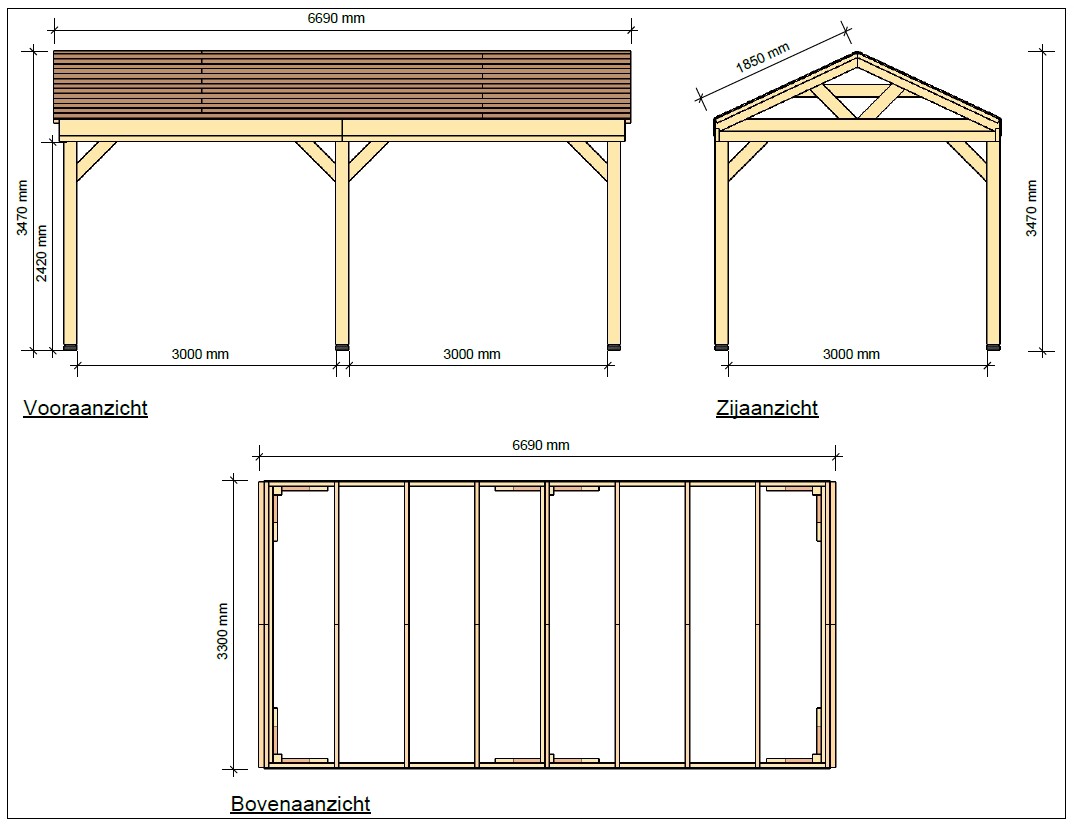 • Staanders: Douglashout 150 x 150 mm – voor een stevige en stabiele constructie