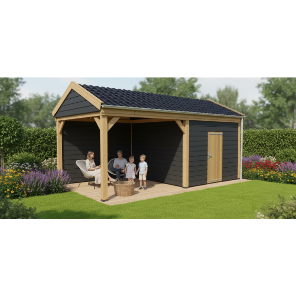 - Flexibel: vrij in te delen met wanden, berging of open overkapping